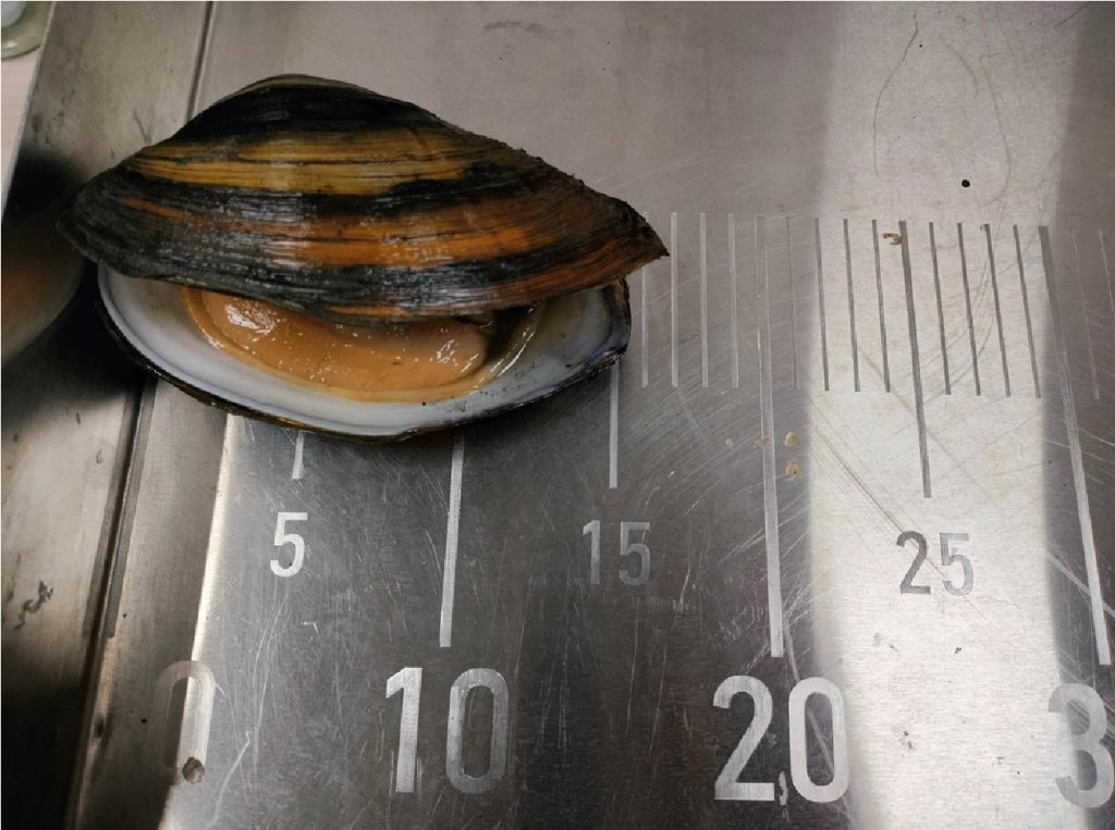 Впервые для восточной части авандельты Волги была собрана живая особь инвазивного вида моллюсков – Sinanodonta lauta.